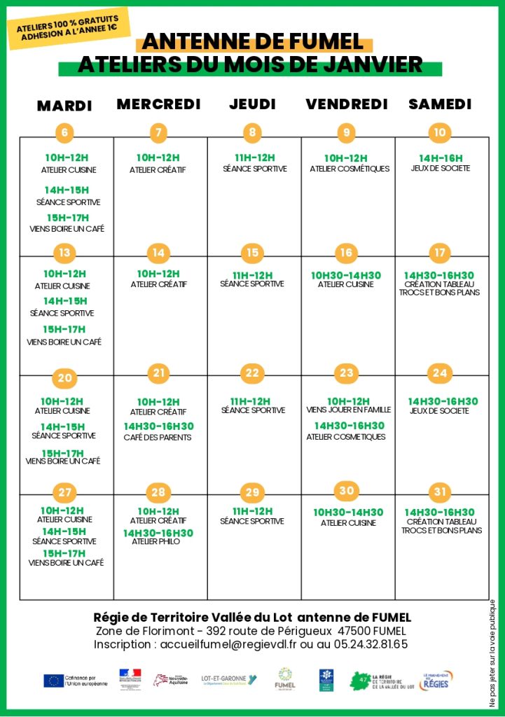 Programme du mois de Janvier 2026